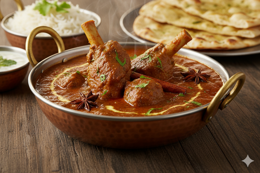 (A traditional North Indian dish, boneless lamb cooked with crushed spices in tomato based gravy)