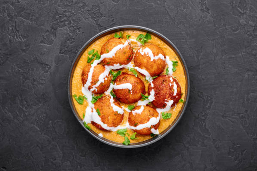 (Round balls of Homemade cottage cheese and mashed potatoes deep fried and generously cooked with rich cashew-nut based gravy and enriched with mixed dry fruits)